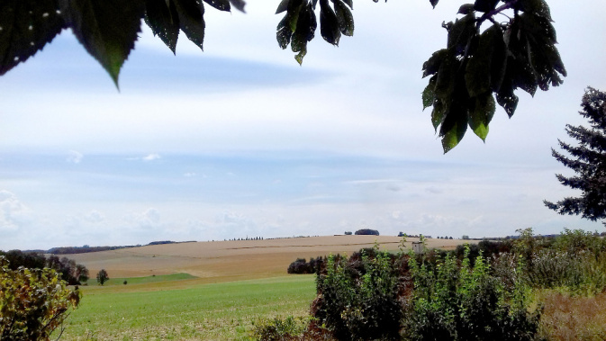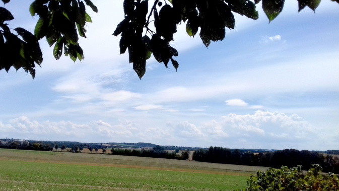 Blick vom Feld zum Apfellehrpfad. – Foto: Christel Römer